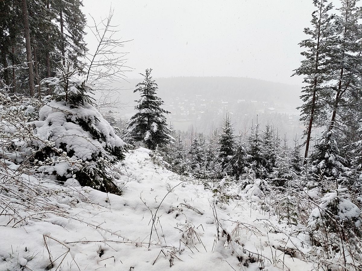 Schnee auf der Dorfblickrunde in Tennenbronn.