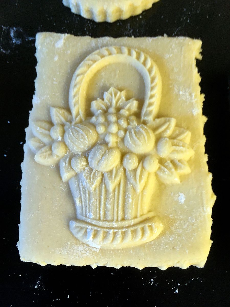 Die Füßchen sind etwas verlaufen. Die Springerle sind zwar sehr hoch. Zwischen „Deckel und Boden“ ist aber ziemlich viel Luft. Der Boden ist auch ziemlich fest und nicht ganz so schön weich.