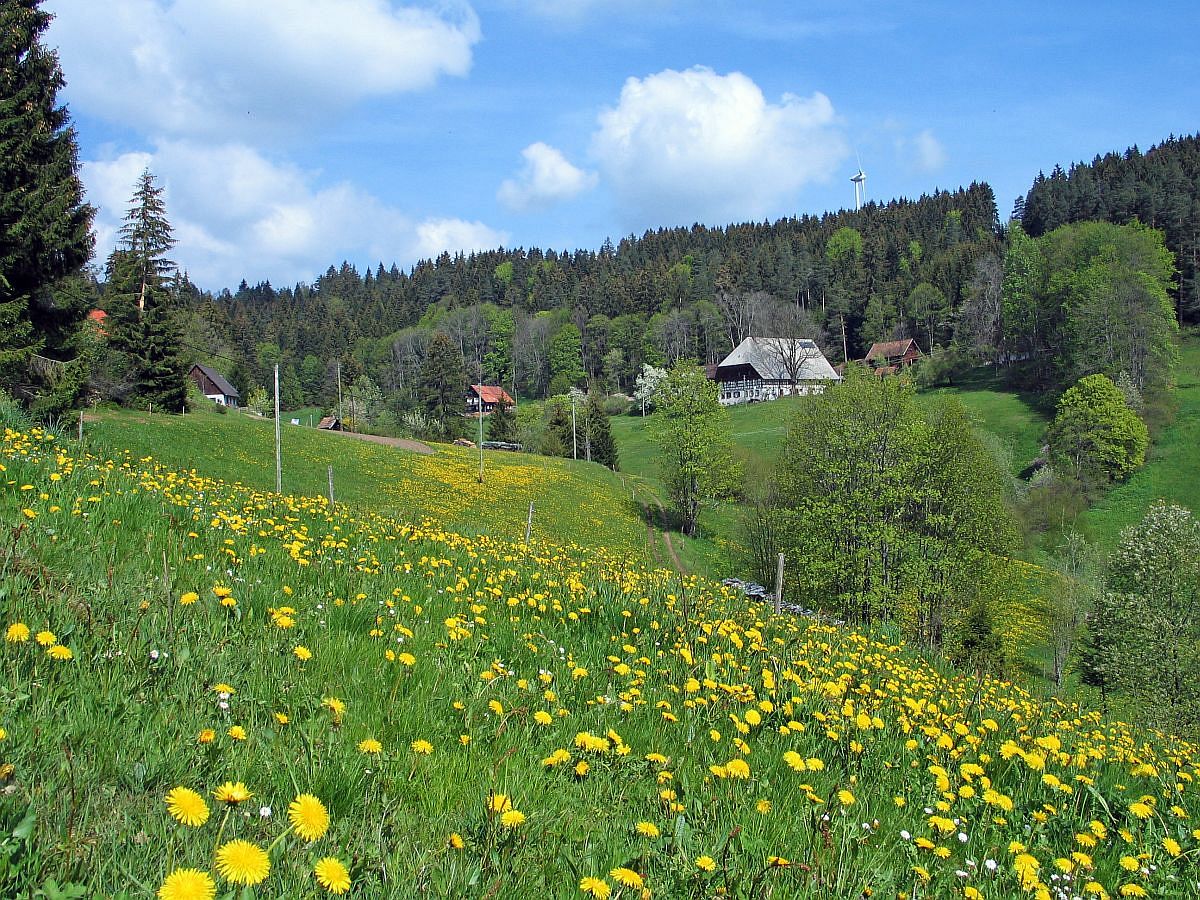 Der Start liegt am Parkplatz am Schützen am Ortsausgang von Tennenbronn in Richtung St. Georgen. Der Weg folgt der Schiltach talaufwärts bis zur Einmündung des Schwarzenbach. Bergauf verläuft der Weg nun im Wald. Den Wegrand säumen große Felsenbrocken, wird sind „am Felsen“ angekommen. Dort gibt es bei einer Bank mit Kreuz eine Möglichkeit für eine Rast. Die Firma Schneider Schreibgeräte liegt auf der anderen Bachseite. Wir queren vorsichtig die Straße und sehen bald schon die Mooshöfe. Der Bioland Mooshof bietet Ferienwohnungen und produziert leckeren Käse in seiner Käserei. Oberhalb des Mooshofs bietet sich nun eine wunderschöne Aussicht auf den Schwarzenbach, Schützen, Hub und Kohlwald. Über einen Verbindungsweg gelangen wir nun in den Schwarzenbach, wo wir über einen schönen Wiesenweg talaufwärts wandern. Bald schon sieht man auf der anderen Talseite die Fachwerkfassade des mächtigen Hansenbauernhofs. Auf ebener Straße, immer wieder mit Ausblicken ins Tal, wandern wir nun oberhalb des Schwarzenbachtales entlang. Dort wo die Straße eine 180 Grad kehre macht biegen wir gerade aus ab auf den Sandacker. Der Florihof, den wir dort sehen, bietet ebenfalls mehrere Ferienwohnungen an. Nun geht es bergab in das kleine Tälchen des Dobel. Es ist ein sehr schönes ruhiges kleines Schwarzwaldtal an dessen Ende unser Ziel, der Parkplatz am Schützen liegt.