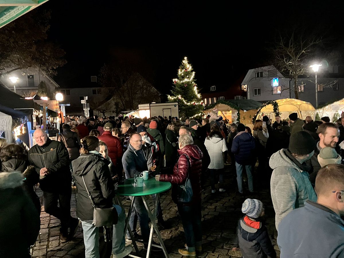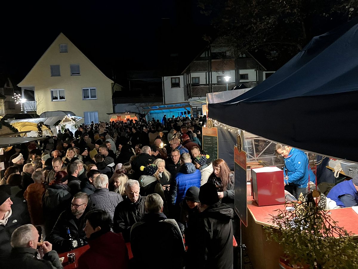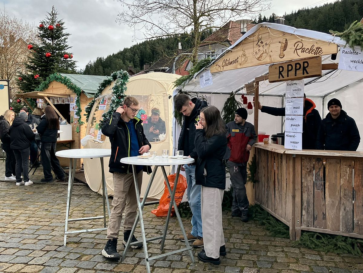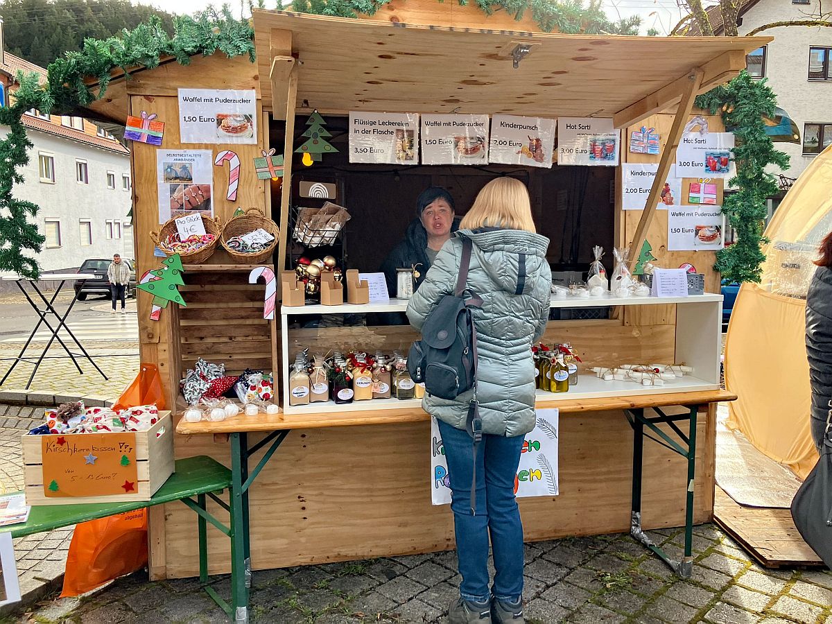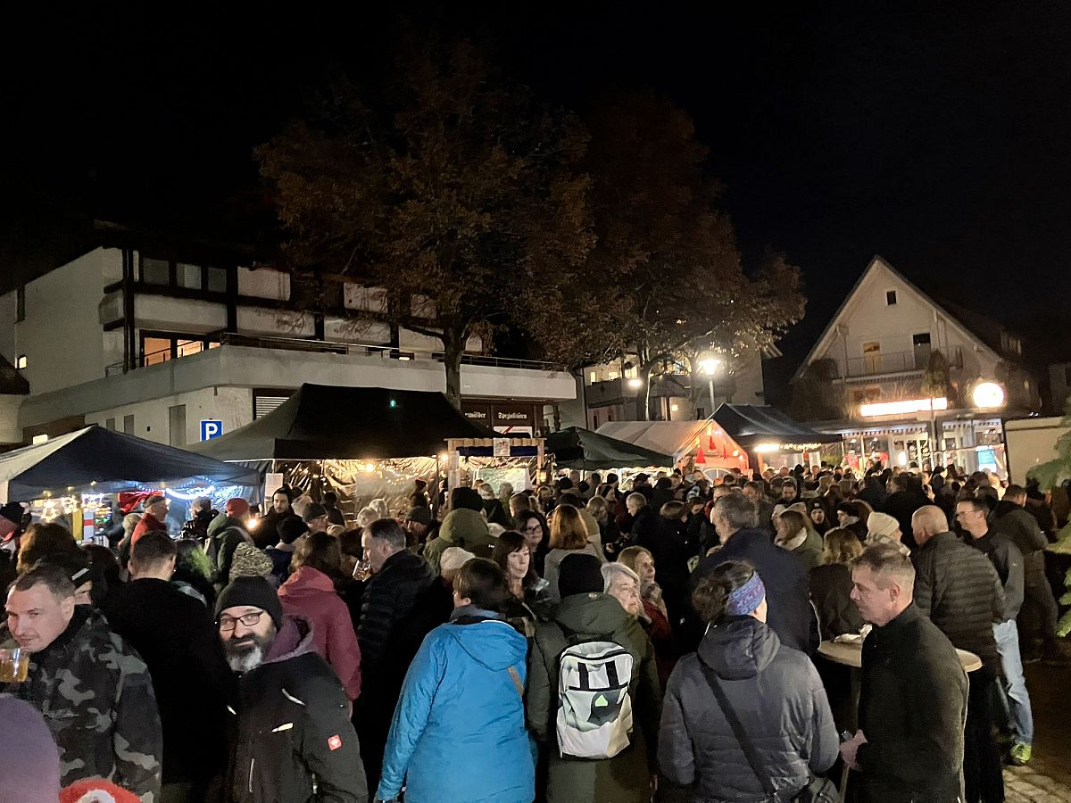 Richtig voll wird der Weihnachtsmarkt in Tennenbronn immer wenn nachmittags der Nikolaus kleine Geschenke für die Kinder bringt. Ein dichtes Gedränge herrscht dann immer auf dem Dorfplatz.