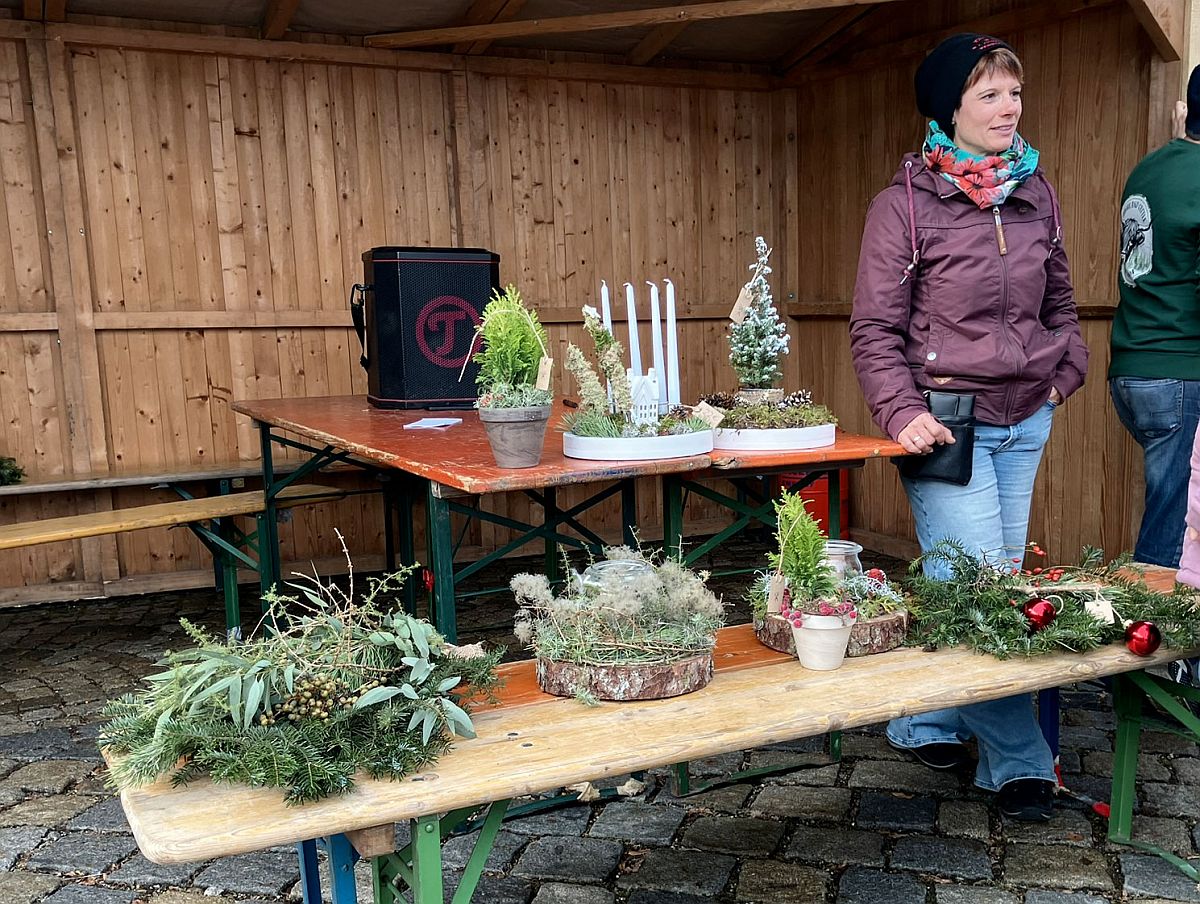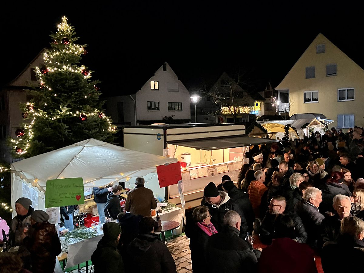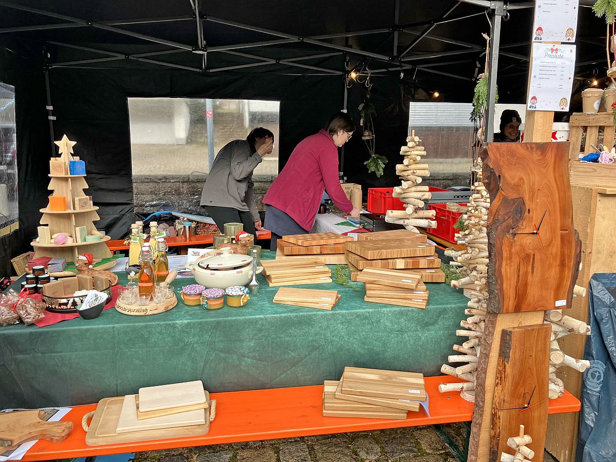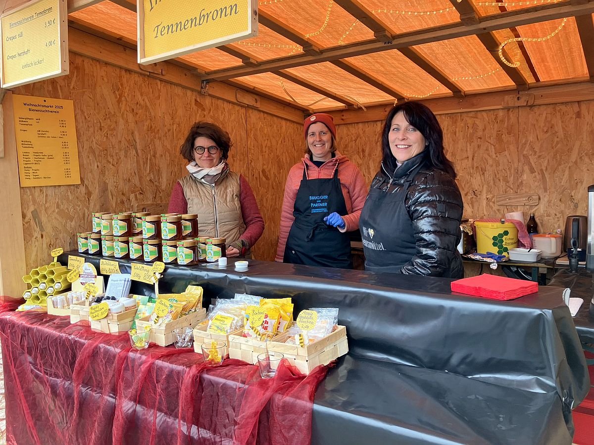 Richtig voll wird der Weihnachtsmarkt in Tennenbronn immer wenn nachmittags der Nikolaus kleine Geschenke für die Kinder bringt. Ein dichtes Gedränge herrscht dann immer auf dem Dorfplatz.