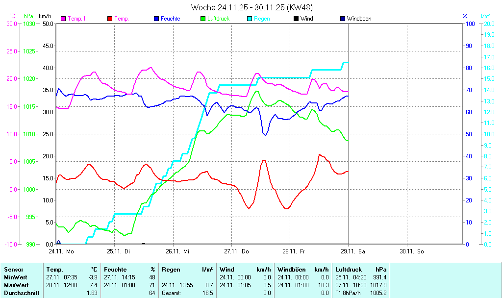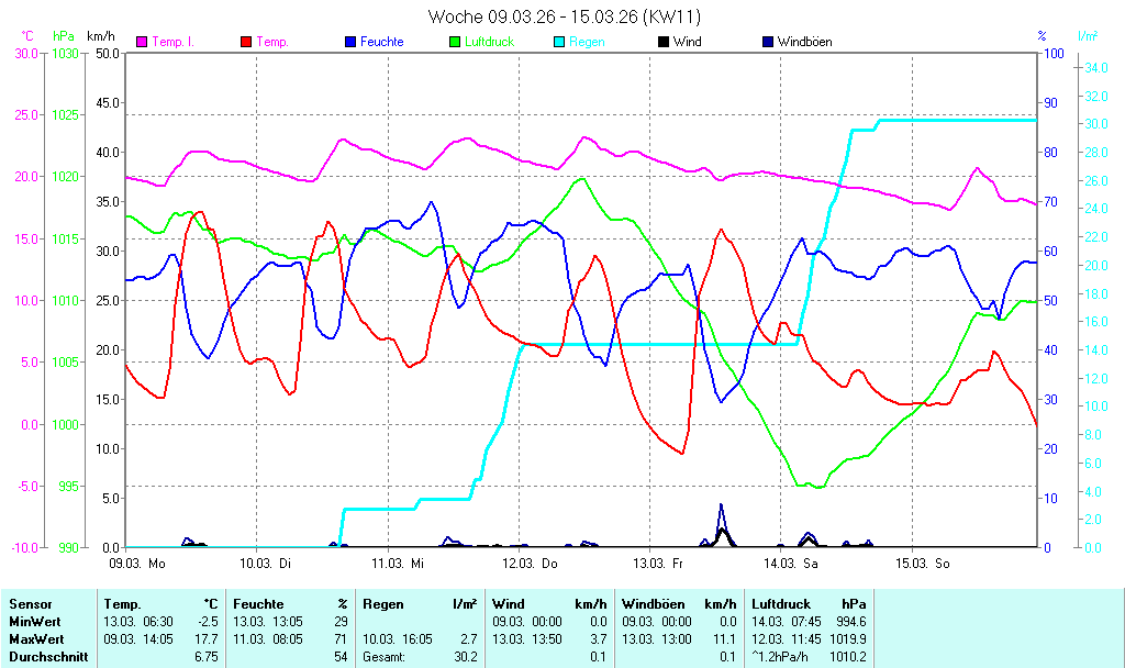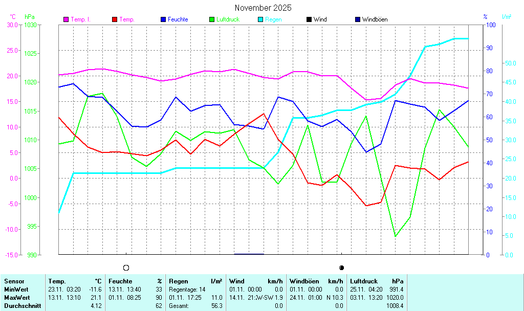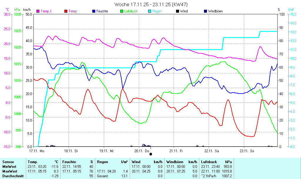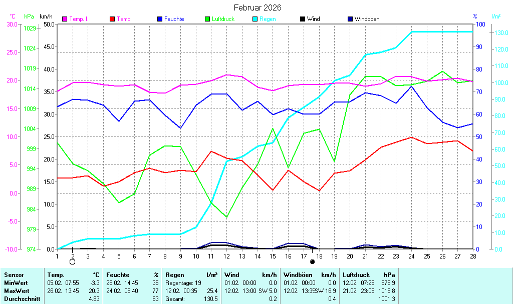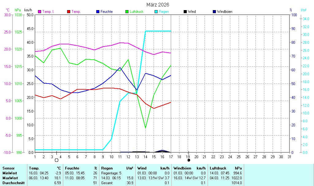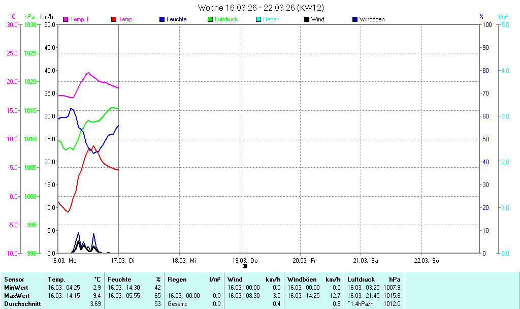 | Niederschlag | letzte Std. 0,0 l/m² |