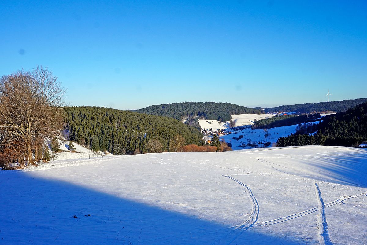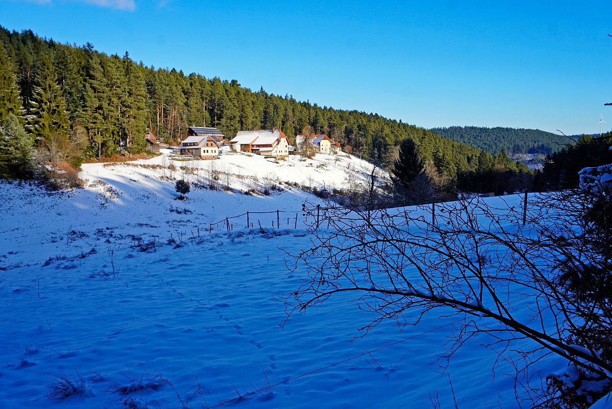Wunderschöne Winterwanderungen kann man machen. Ich bin über Linde, Dobel und Sandacker in den Schwarzenbach und zu den Mooshöfen durch den Schnee gestapft.
